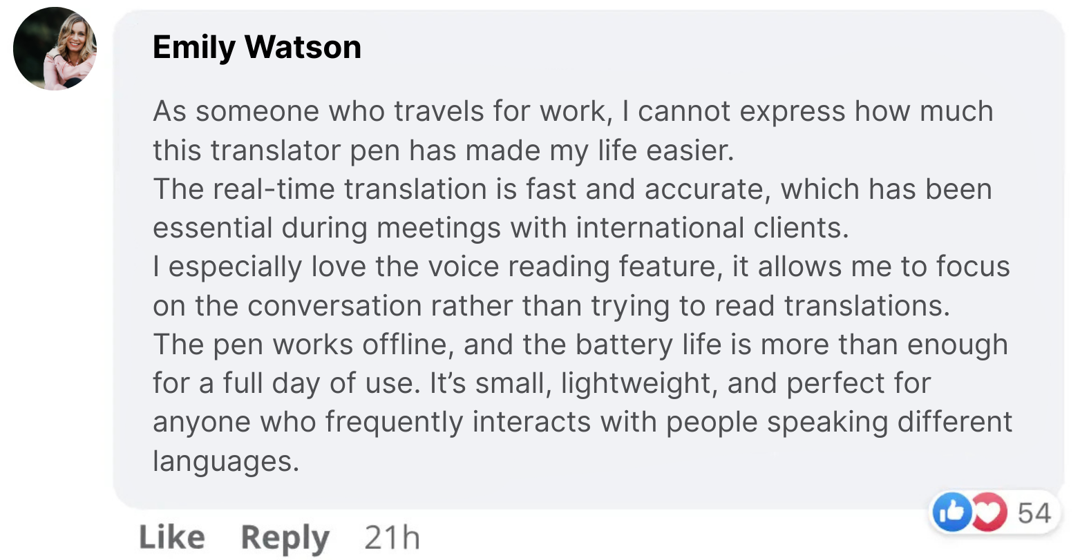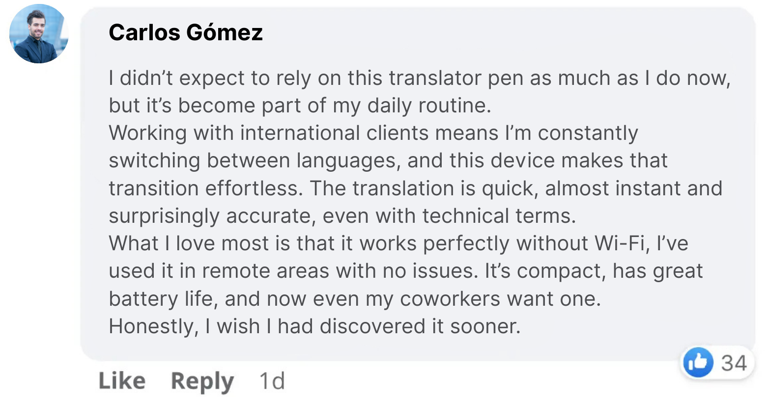 I travel a lot for work in Asia, and this pen has saved me more than once. It translates menus, signs, and documents instantly. Super handy and fits in my pocket.
