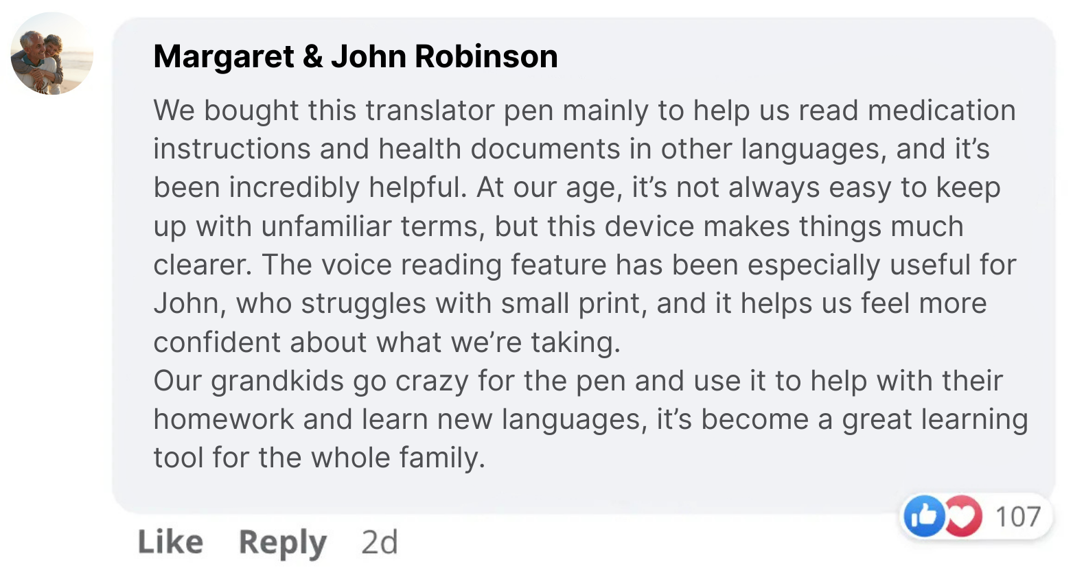 Since getting this pen, my father can finally understand his medication instructions and read the newspaper again.